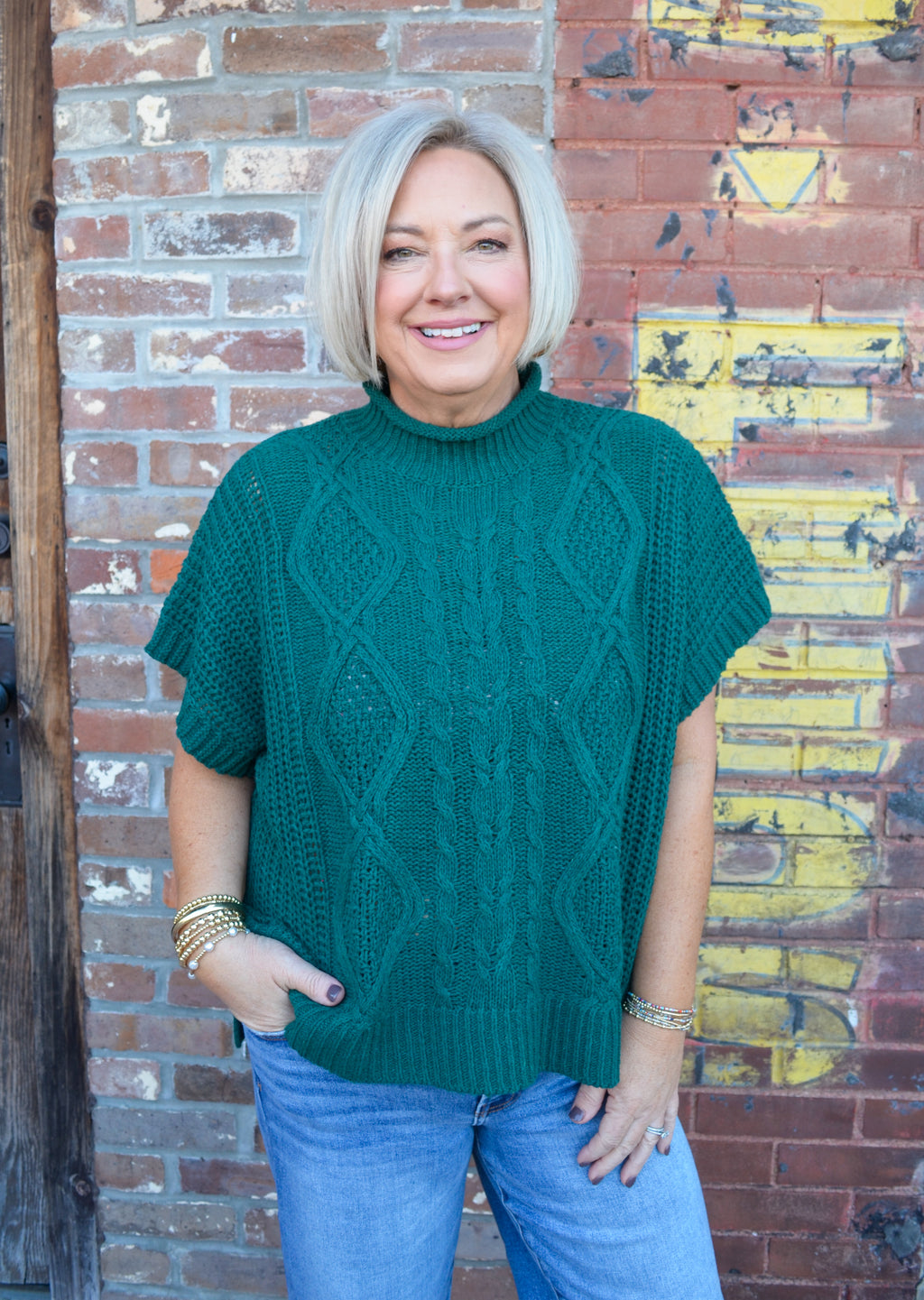 Claude Cable Knit Sweater in Green