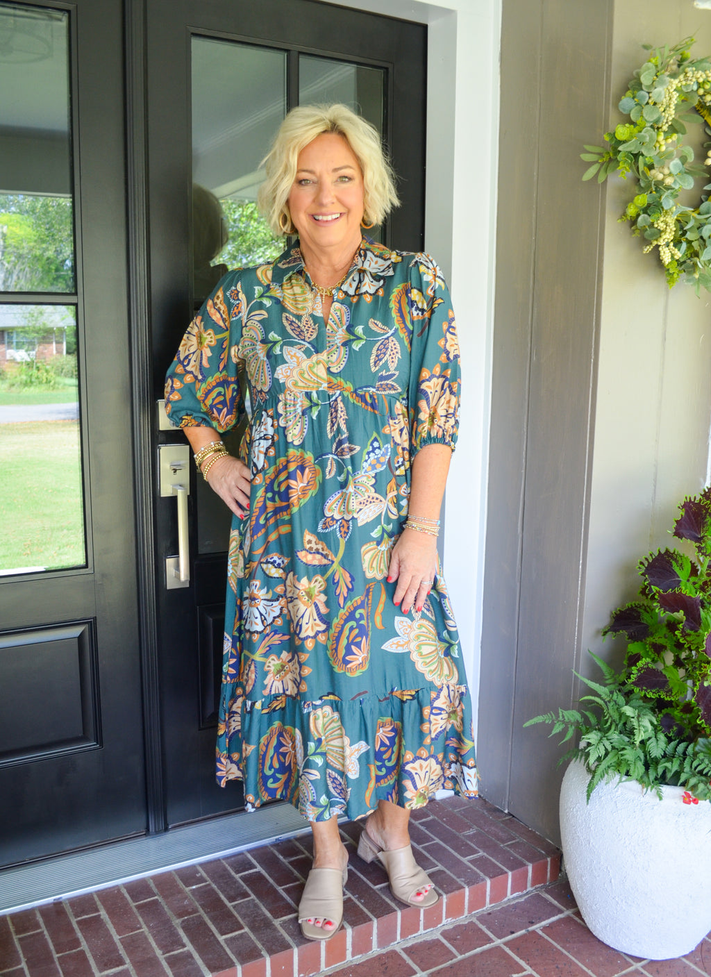 Teal Brunch Party Umgee Midi Dress