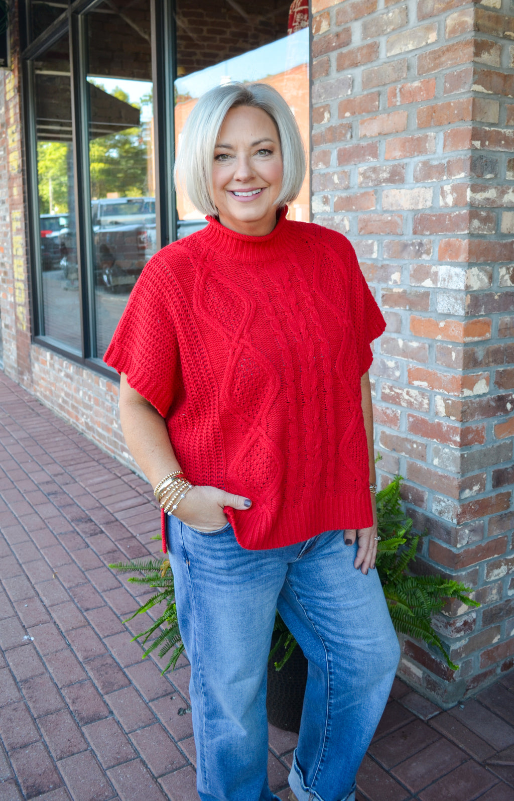 Claude Cable Knit Sweater in Red
