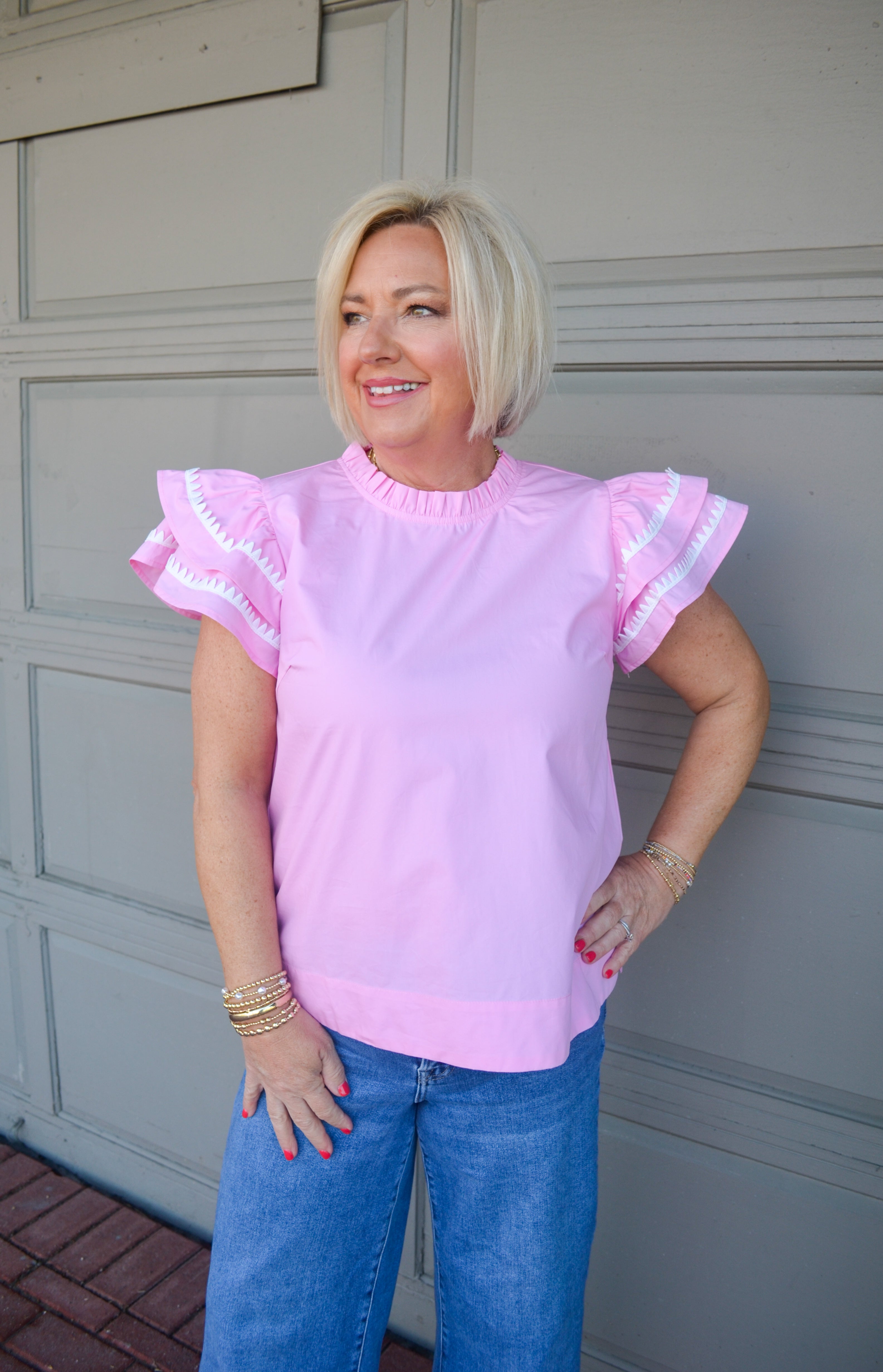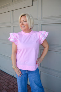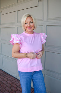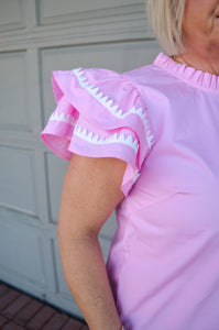 Elevate your wardrobe with our Full of Charm Top, crafted from soft cotton poplin for all-day comfort. The elegant frilled neck adds a touch of sophistication, while playful ruffled sleeves with distinctive color trimming create visual interest. The back keyhole detail provides both style and breathability, making this versatile piece perfect for any occasion. You'll love how effortlessly it transitions from casual daytime looks to evening ensembles.