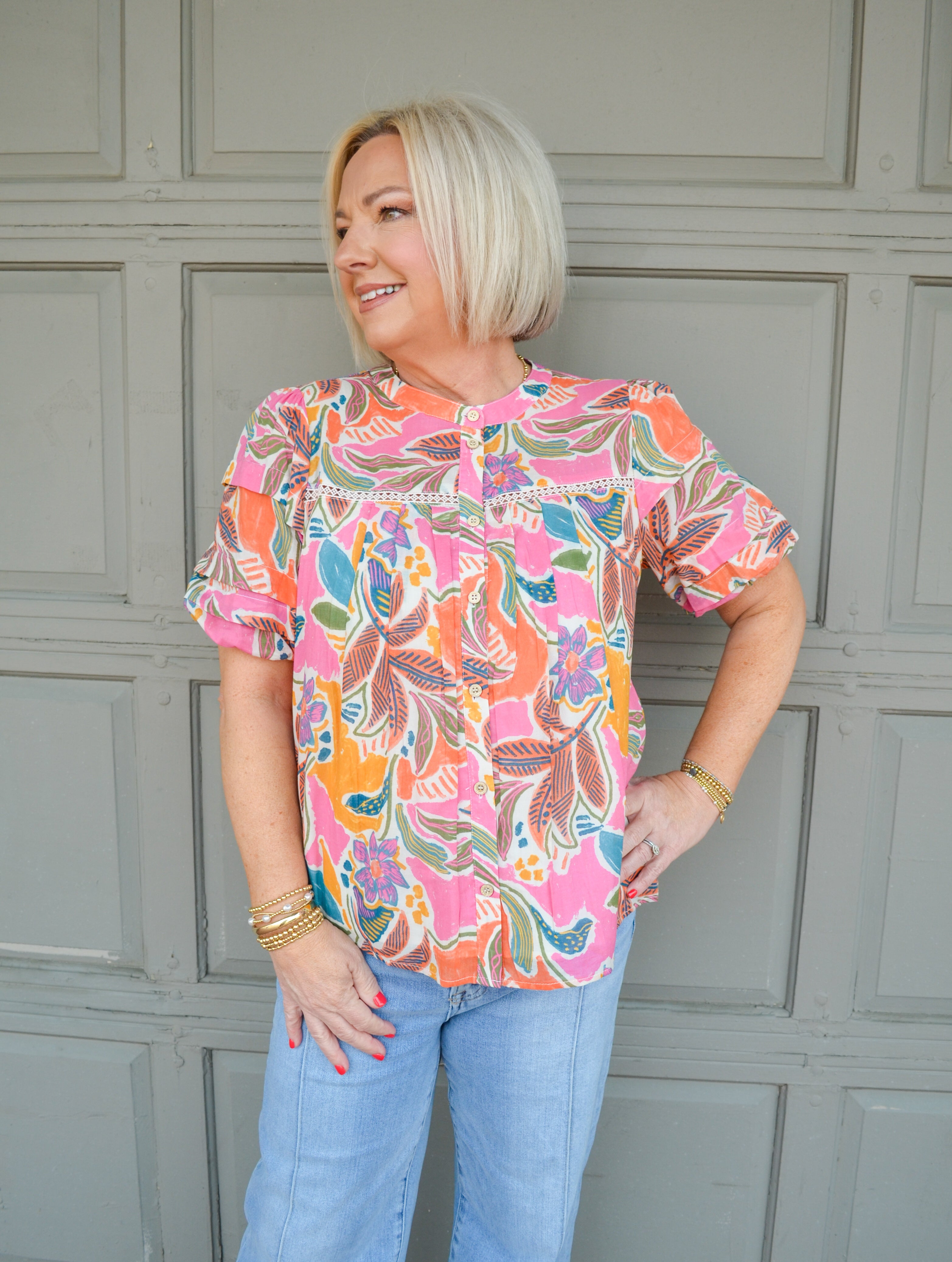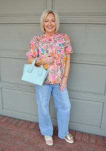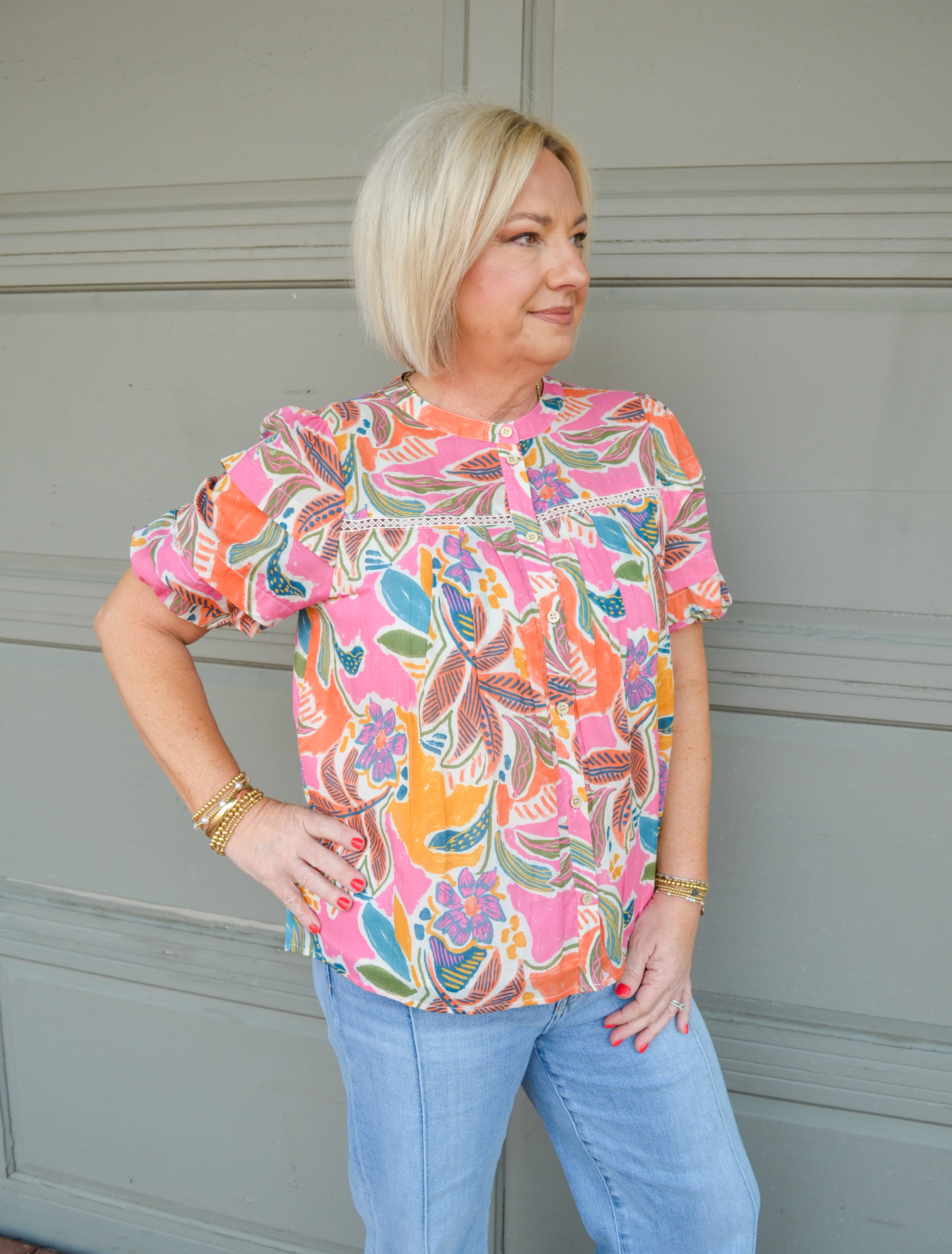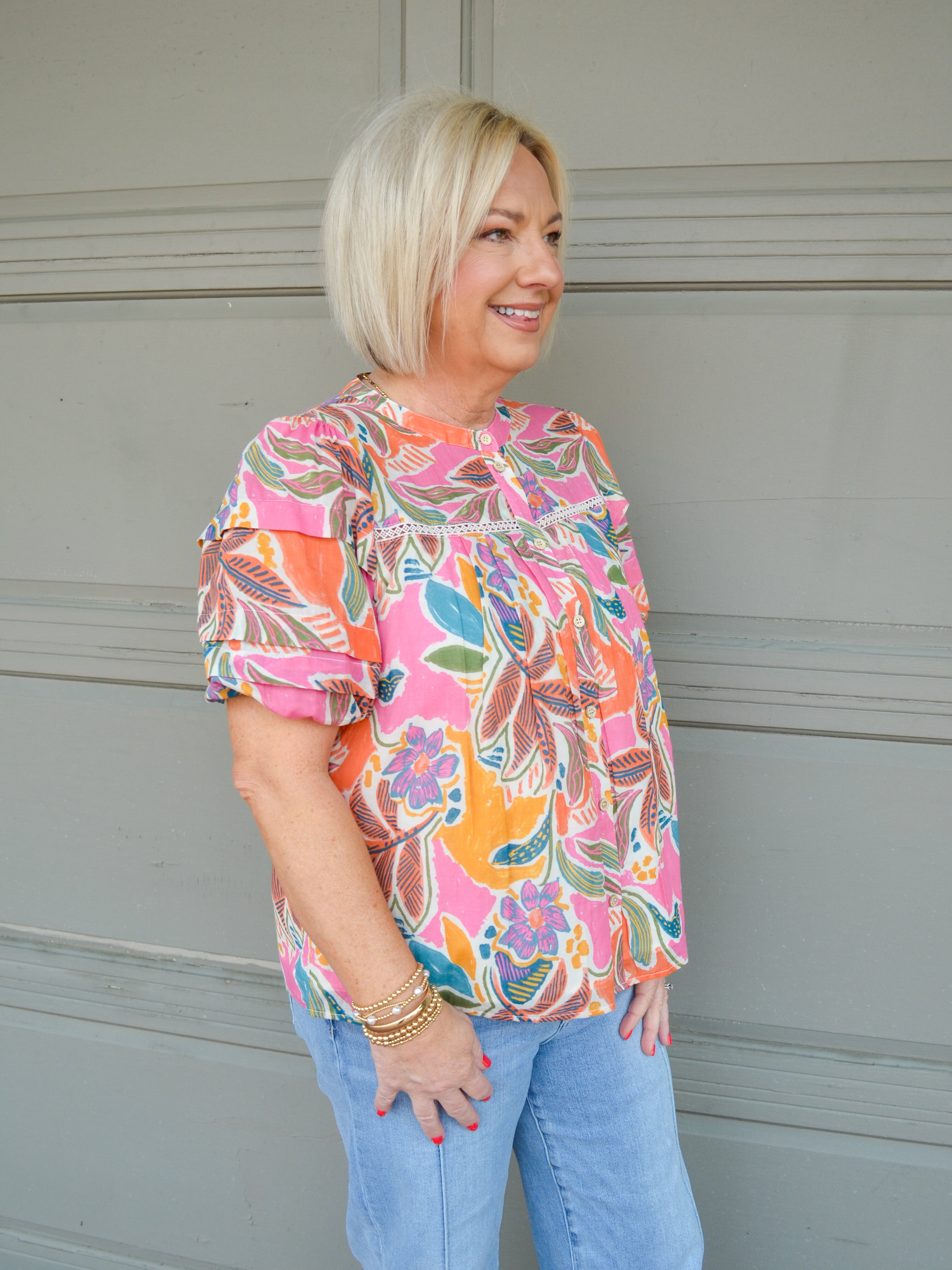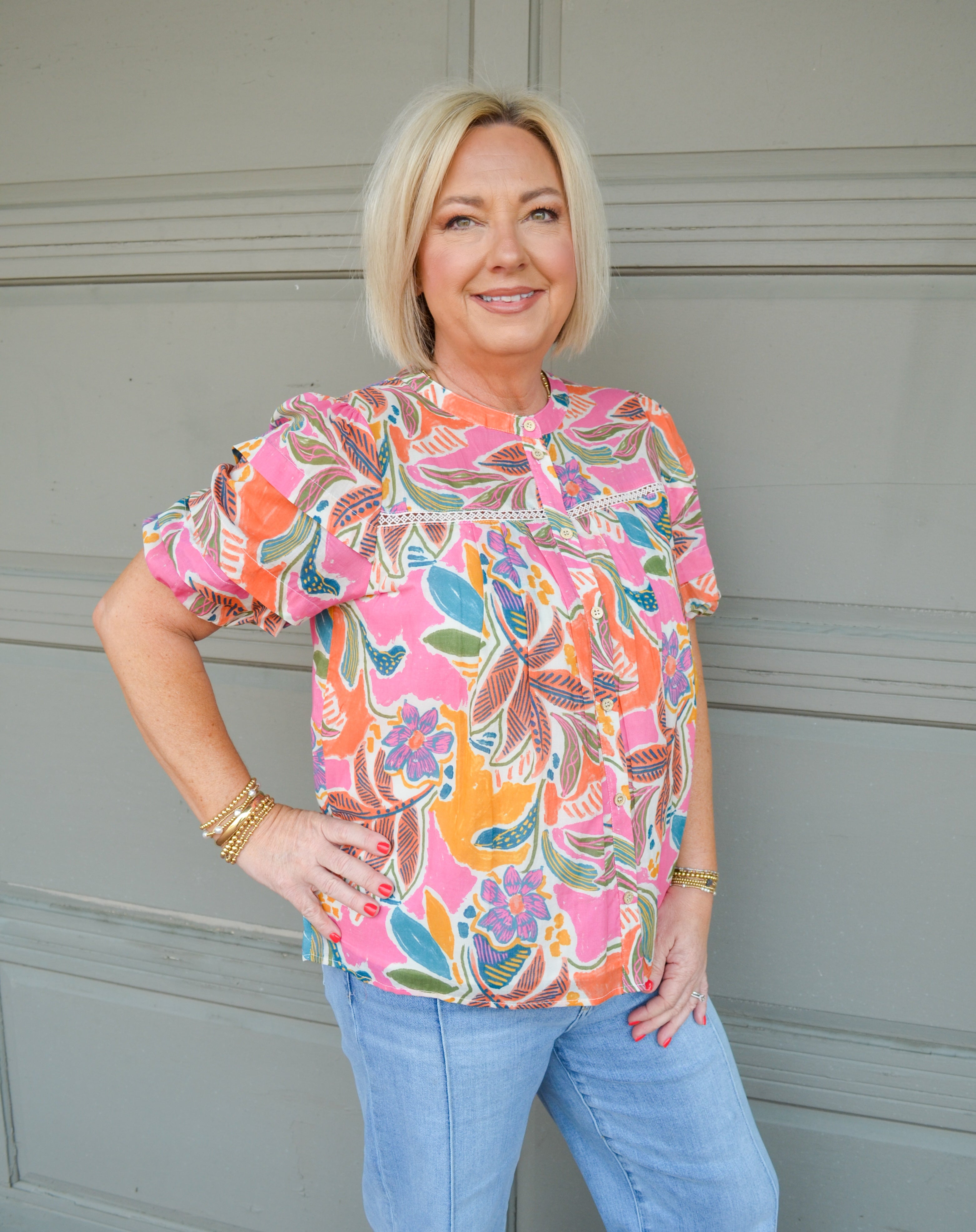 Elevate your wardrobe with our Gorgeous Babe Top, featuring an elegant button-front design and sophisticated v-neckline. The charming ruffle collar adds a touch of femininity, while gathered ruffle sleeves create the perfect balance of structure and softness. Adorned with a stunning floral pattern, this top exudes timeless class that transitions effortlessly from office to evening. Don't miss the chance to make this versatile statement piece yours today.