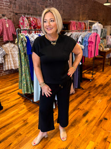 Introducing the Sabrina Pant Set: your new go-to for stylish, yet playful outfits. This black pants set exudes class and cuteness all in one. Perfect for any occasion! (And yes, it's as comfortable as it is cute).
