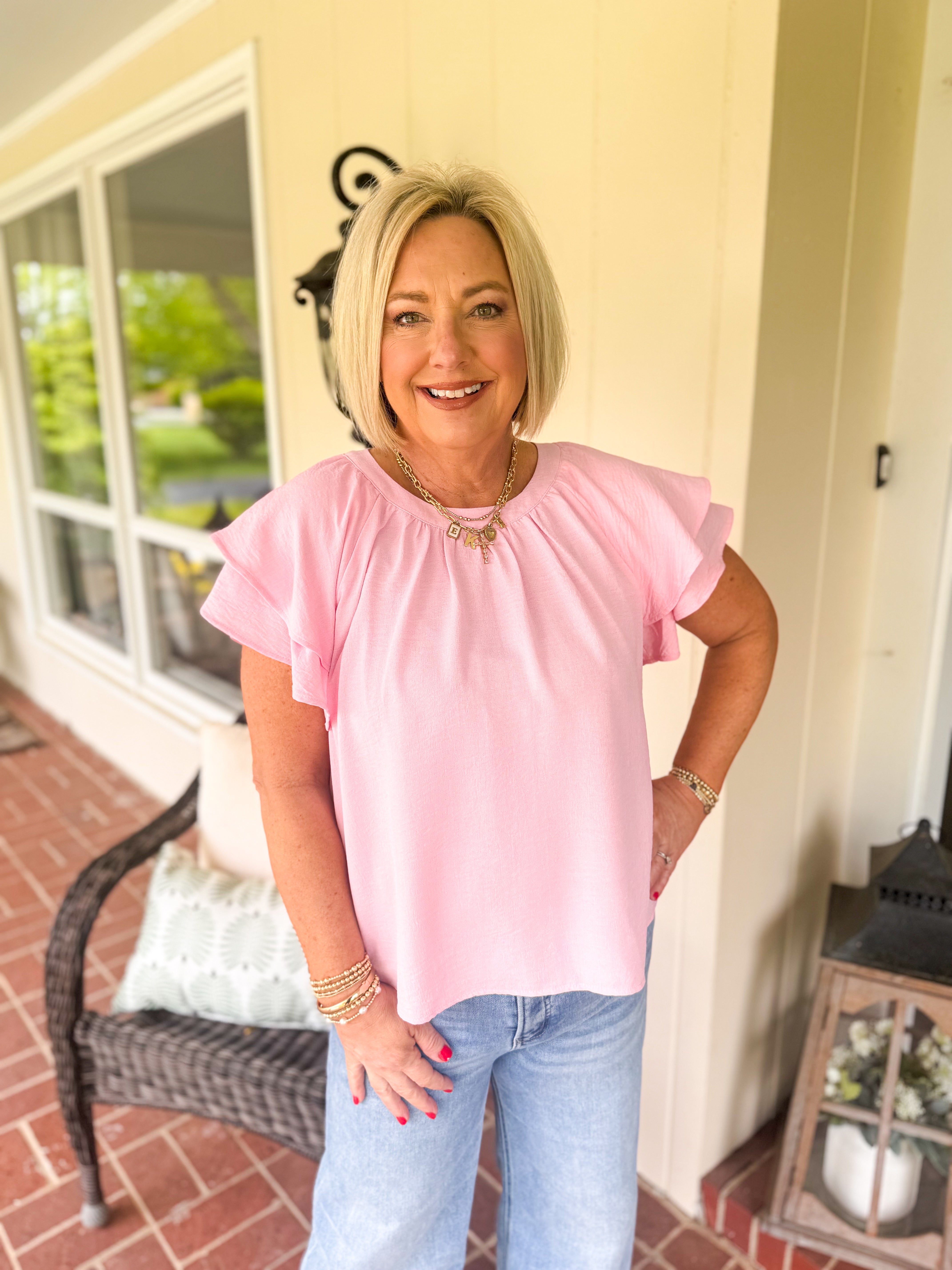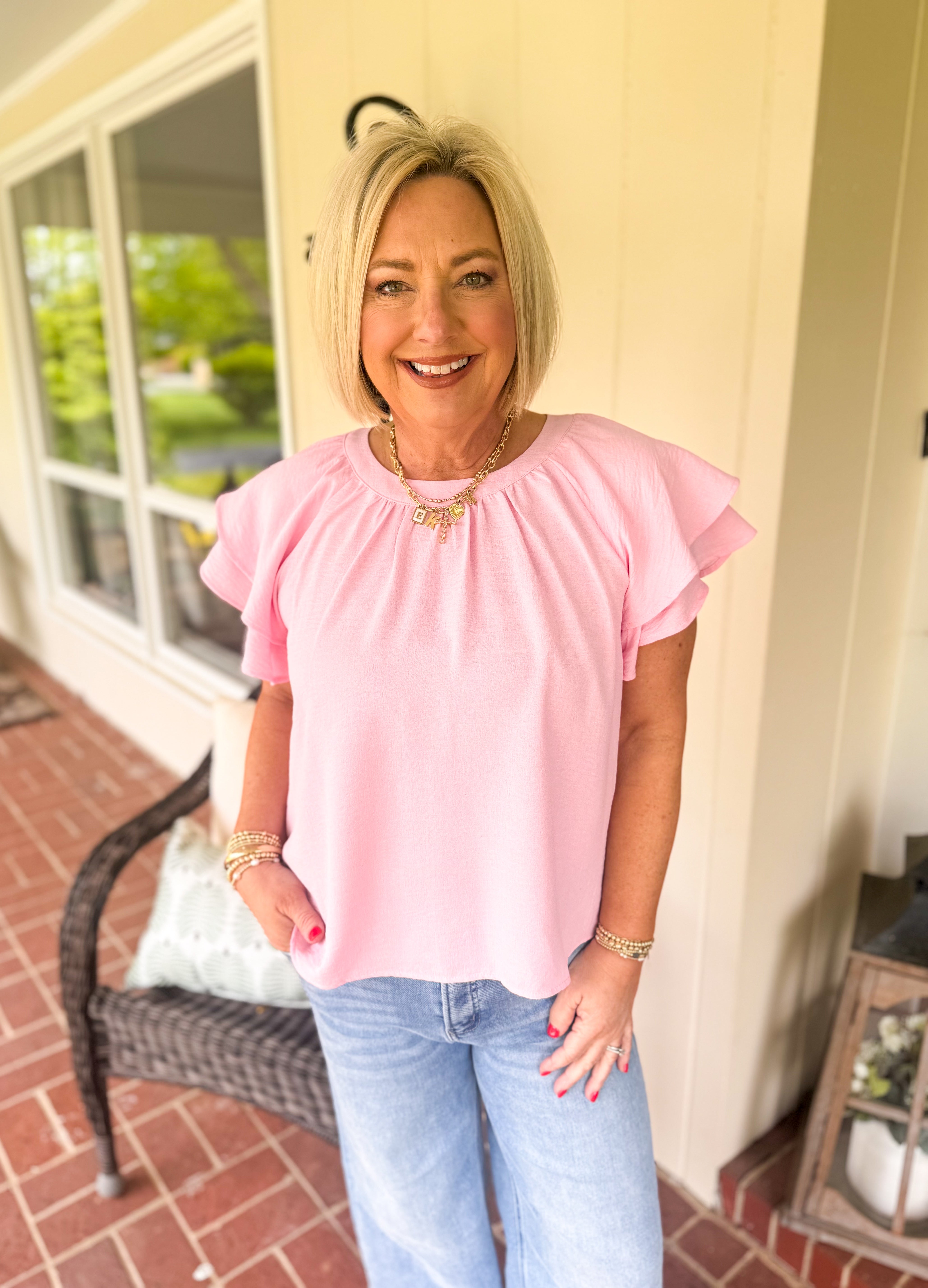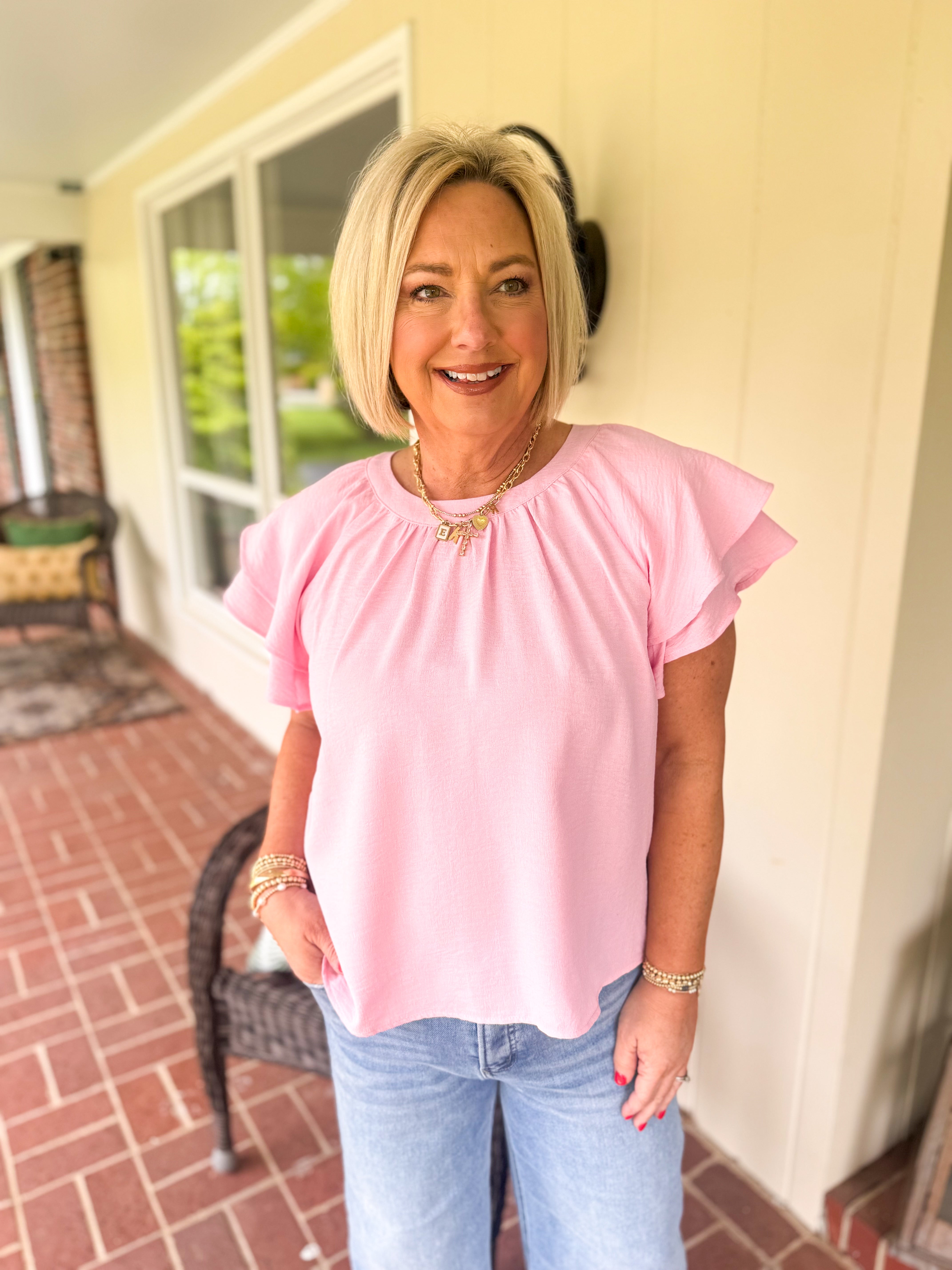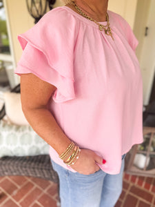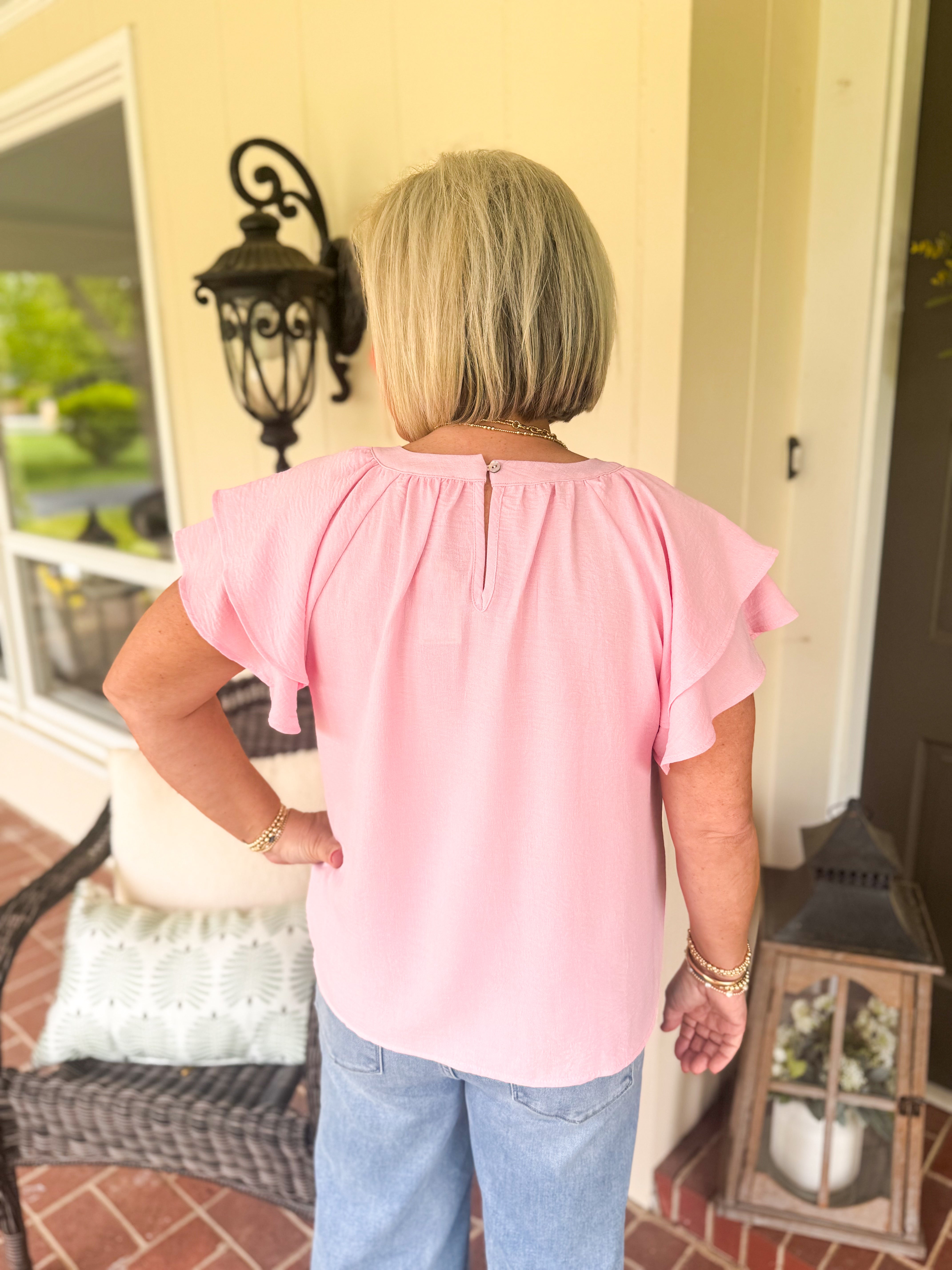 Elevate your wardrobe with our VIP Plans Top! This solid top features a flattering U-neck and a unique back button closure for added style. Perfect for any occasion, the layer butterfly short sleeves add a touch of feminine charm. Upgrade your look today with this must-have piece!